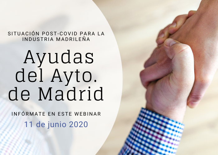 Para explicarnos las bases de la convocatoria, así como otras medidas de ayuda para industria madrileña en la situación post-covid, la Cámara de Comercio de Madrid ha preparado esta sesión Webinar gratuita el próximo 11 de junio.